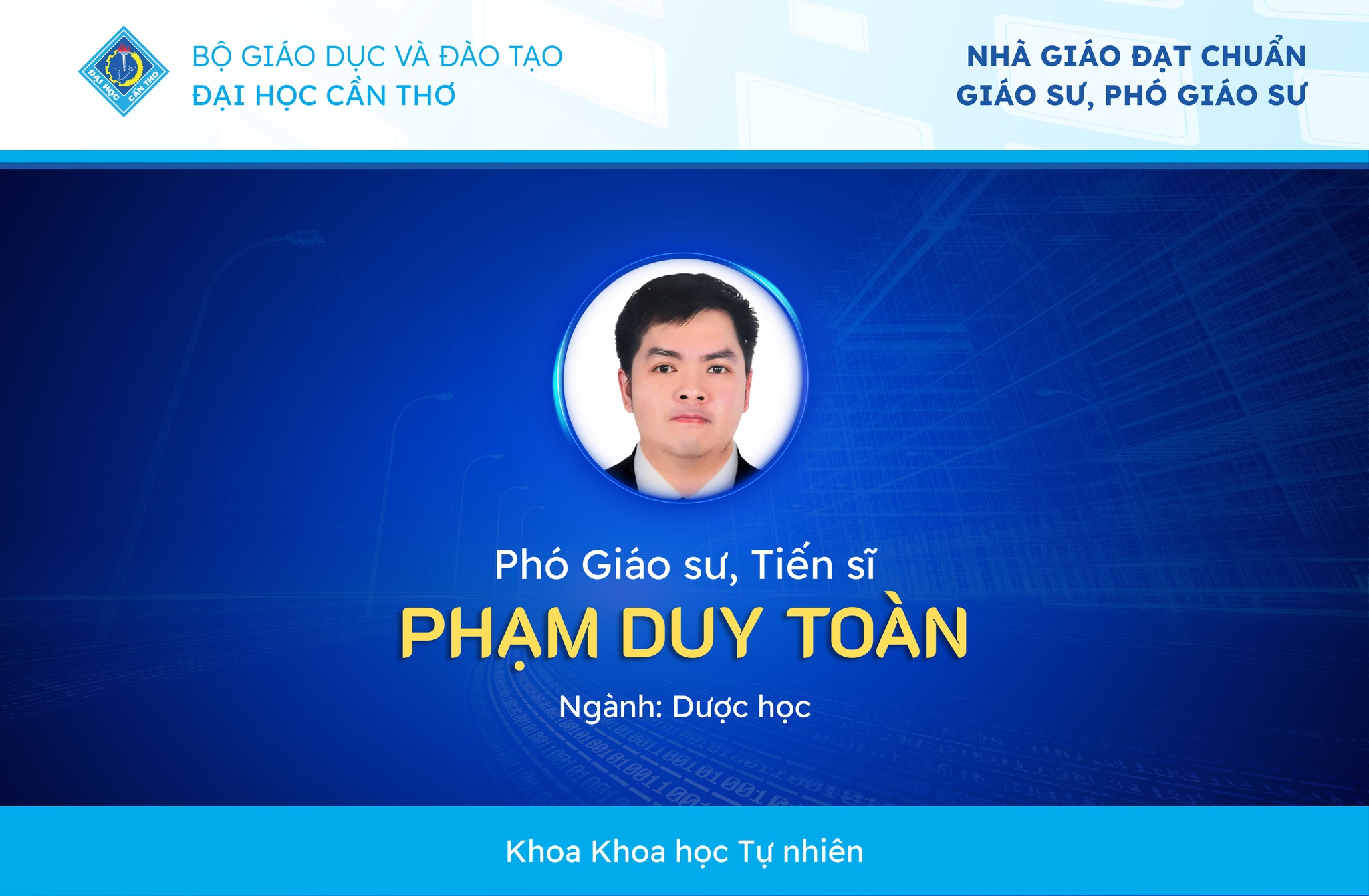PGS.TS. Phạm Duy Toàn (ngành Dược học) được công nhận đạt chuẩn chức danh Phó Giáo sư ở tuổi 34 (sinh năm 1991), trở thành giảng viên trẻ nhất của Đại học Cần Thơ được Hội đồng Giáo sư Nhà nước ghi nhận trong năm nay.