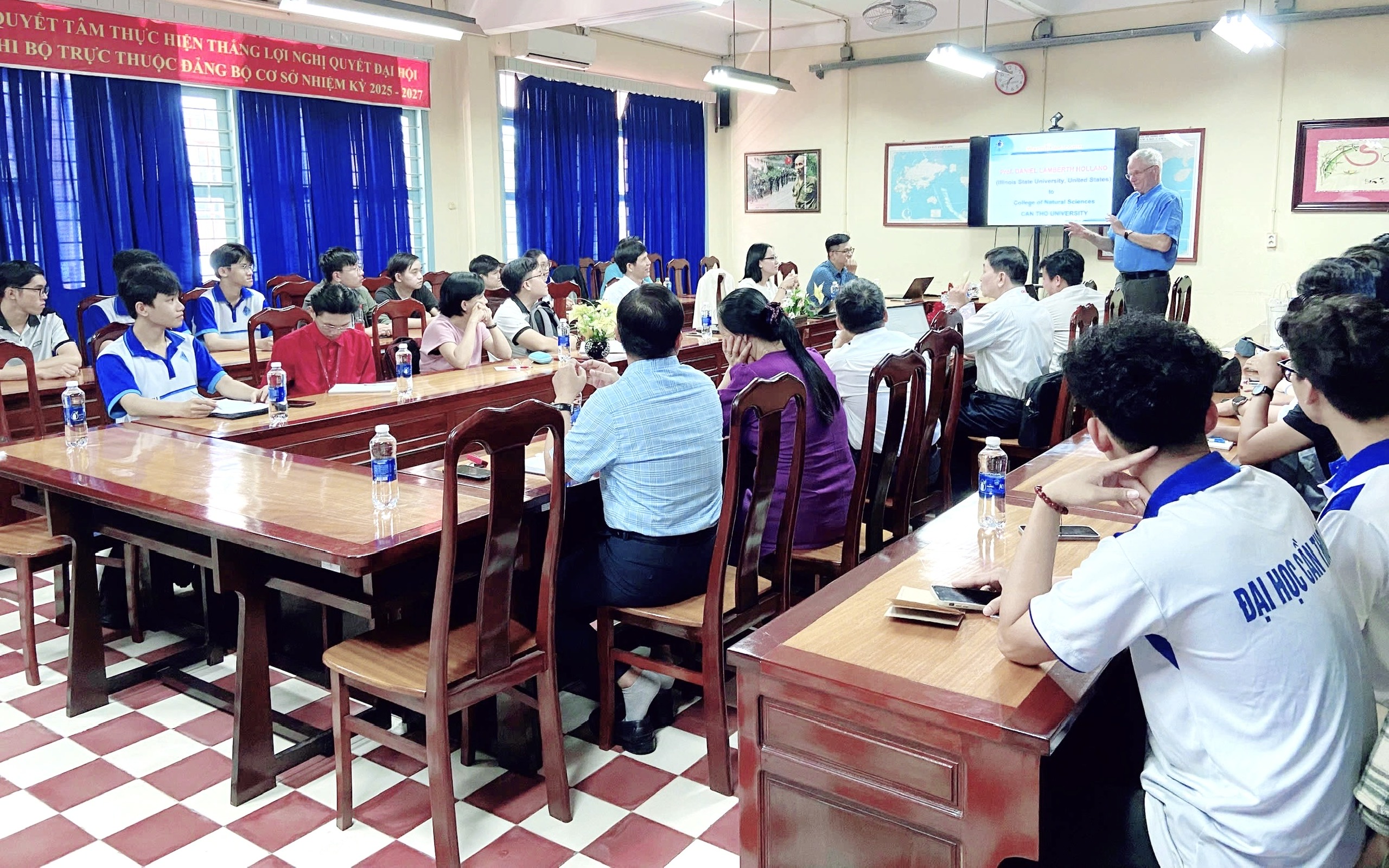 During the visit, Prof. Holland delivered an overview of the Fulbright Program and introduced scholarship opportunities as well as academic and research programs at the University of Illinois. In addition, he presented several public and specialized lectures in the field of physics. On this occasion, the two sides also discussed potential collaborations in teaching and research between College of Natural Sciences and Illinois State University. In the coming time, both sides will continue discussions and gradually implement the cooperation initiatives that were proposed.